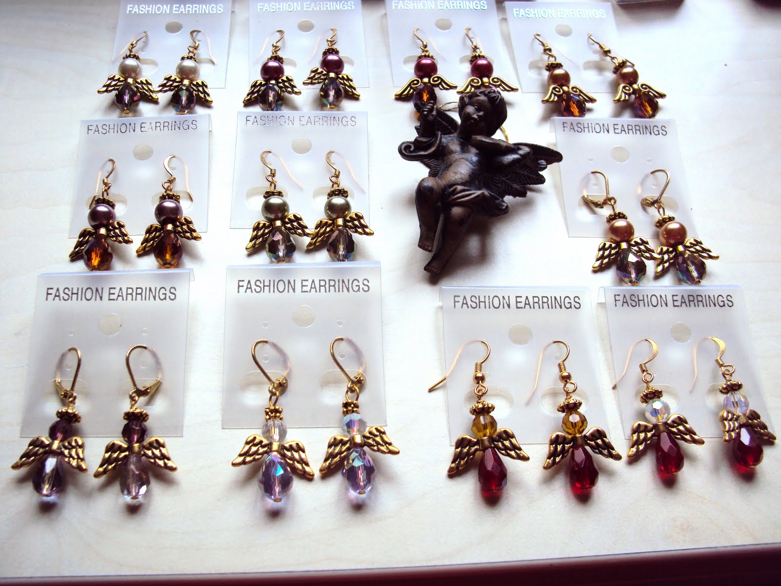 made 60 pairs of Angel inspired earrings, a few keychains & phones straps to start with. The items